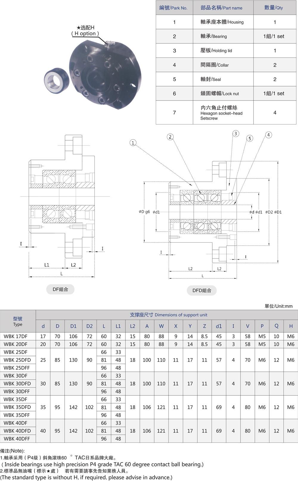 WBK絲桿支撐座簡單的來講是連接絲桿和電機的軸承固定底座,是正確的標準滾珠螺桿軸端成品,同時預備了四種種標準化的支撐單元:EK型、EF型和BK型、BF型。支撐單元固定側的裝有經過預壓調整的JIS5級的角接觸球軸承,很多都是小型的,特別是在EK6、EK8兩種超小型式中,則裝有為超小型滾珠螺桿所開發設計的接觸角45°(45度)的超小型角接觸球軸承,為了能獲得高精度、高剛性并且穩定自如的回轉性能,同時支撐座的支撐單元也使用了深溝球軸承,支撐單元BK型、EK型的內部軸承中裝入了適當的鋰皂基潤滑脂,不易過多,用特殊密封墊圈進行密封,可以長期使用,也能直接安裝。