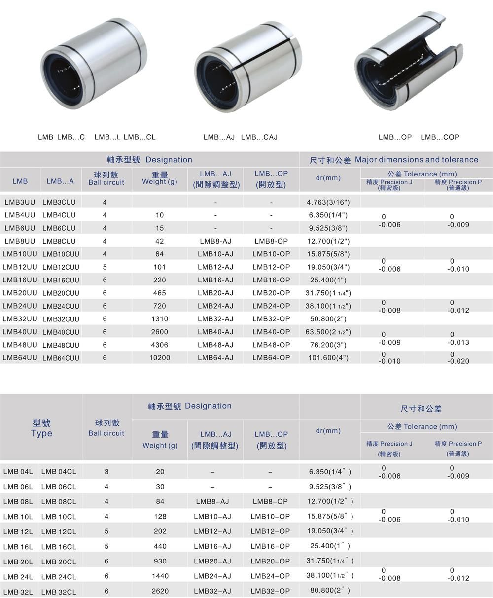 LMB-UU/LMB-LUU/LMB-CUU/LMB-CLUU直線軸承