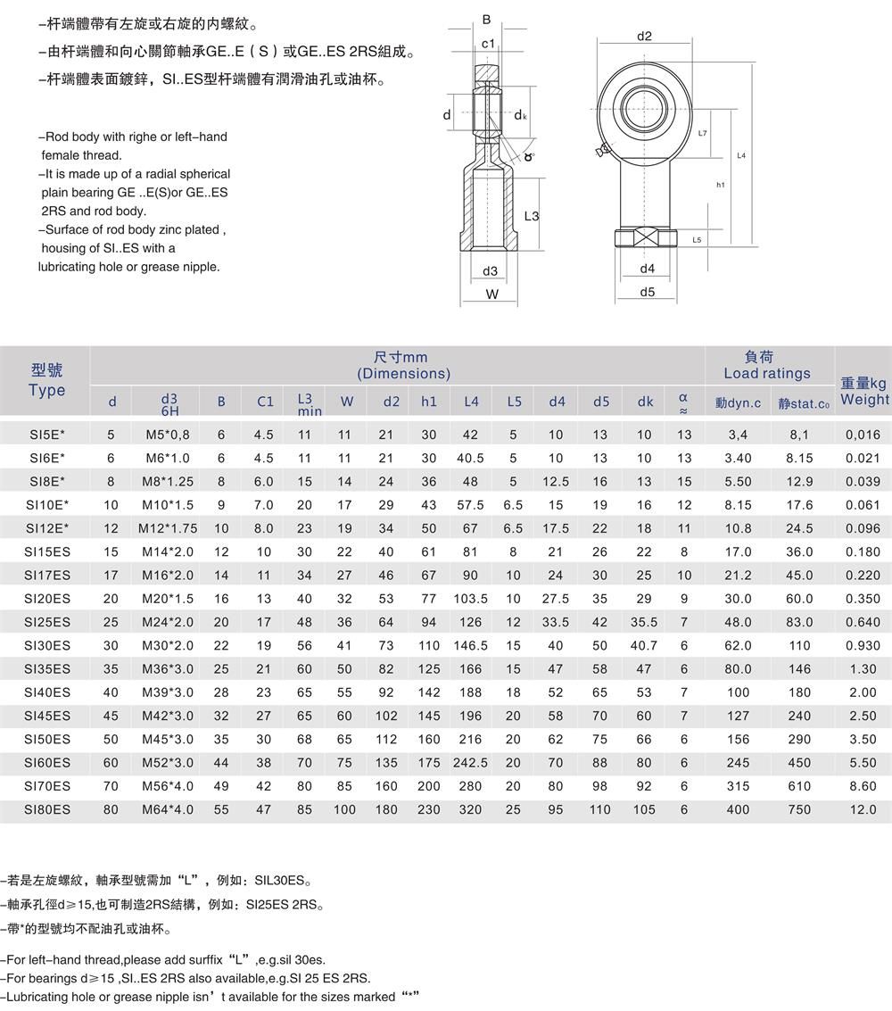 SI-E/SI-ES桿端關(guān)節(jié)軸承是關(guān)節(jié)軸承中的一個(gè)支類,是帶有裝于桿端關(guān)節(jié)軸承,關(guān)節(jié)軸承的意思就是球面滑動(dòng)軸承,具有球形滑動(dòng)球面接觸表面的內(nèi)、外圈組成基本型關(guān)節(jié)軸承,能承受很大的負(fù)荷,在工作中不易損壞。復(fù)合材料是鑲在內(nèi)圈的外球面上,在工作中關(guān)節(jié)軸承可以產(chǎn)生自潤(rùn)滑,用途一般是用于速度較低的滑動(dòng)運(yùn)動(dòng)和擺動(dòng)運(yùn)動(dòng),同時(shí)可以在一定角度范圍內(nèi)進(jìn)行傾斜運(yùn)動(dòng),自潤(rùn)滑關(guān)節(jié)輔承一般應(yīng)用于水利工業(yè)、專業(yè)機(jī)械等行業(yè)領(lǐng)域,軸殼孔和支撐軸其心度較大時(shí),依然可以進(jìn)行正常工作,為什么會(huì)這樣,因?yàn)殛P(guān)節(jié)軸承傾斜角度大,在結(jié)構(gòu)內(nèi),球形滑動(dòng)時(shí),接觸面積也大,所以大多數(shù)關(guān)節(jié)軸承采用了特殊的工藝處理方法,好應(yīng)用于一些重要場(chǎng)合。