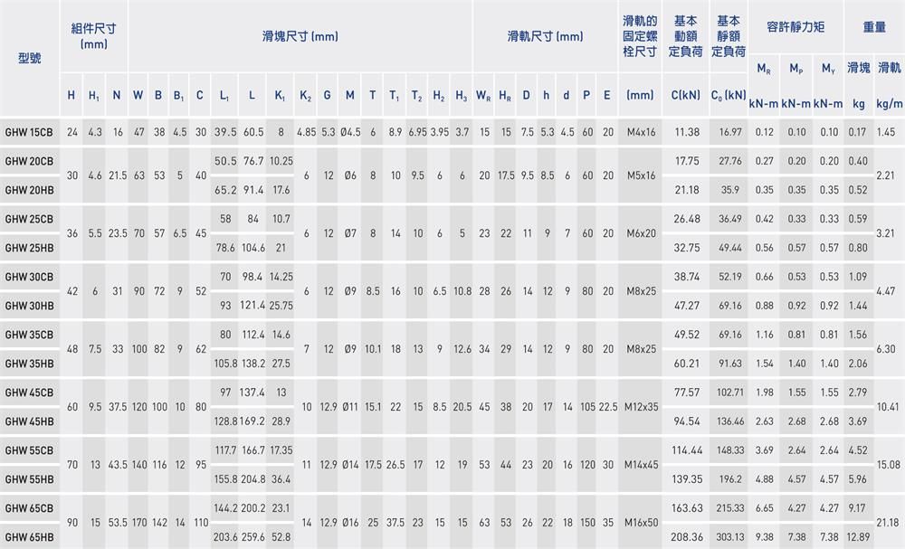 精密線性滑軌GHL-CA、GHL-HA