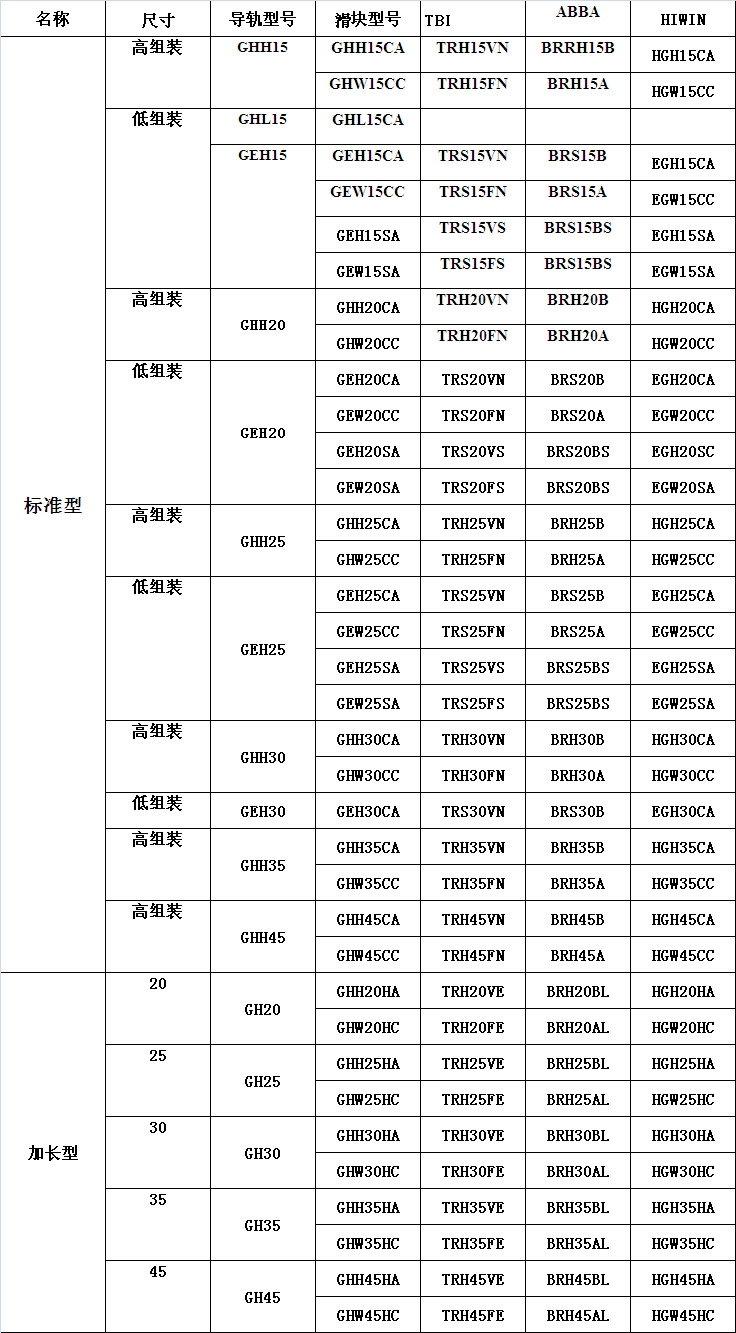 GE系列分為非互換性及互換性型兩種線性滑軌,兩者規(guī)格尺寸相同,主要差異點(diǎn)在于互換性型之滑塊、滑軌可單獨(dú)互換使用,較便利,但其組合精度無法達(dá)到非互換性型之超精密級(jí)以上的精度,不過由于互換性型之組合精度目前已達(dá)到一定的水平,對(duì)不需配對(duì)安裝線性滑軌的客戶而言,是一項(xiàng)便利的選擇。GE線性滑軌的產(chǎn)品規(guī)格型號(hào)主要標(biāo)明線性滑軌尺寸、型式、精度等級(jí)、預(yù)壓等規(guī)格要求,以利訂貨時(shí)雙方對(duì)產(chǎn)品的確認(rèn)。
