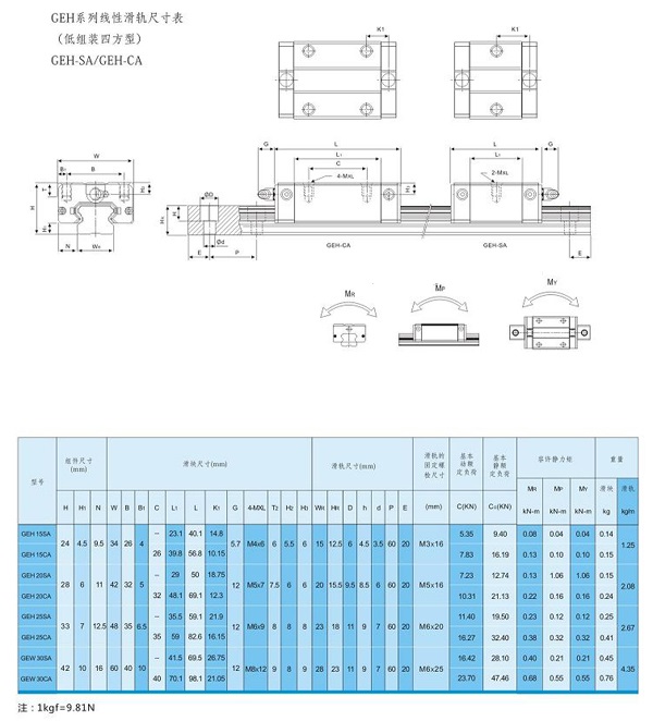 GEH系列精密線性滑軌低組裝四方型