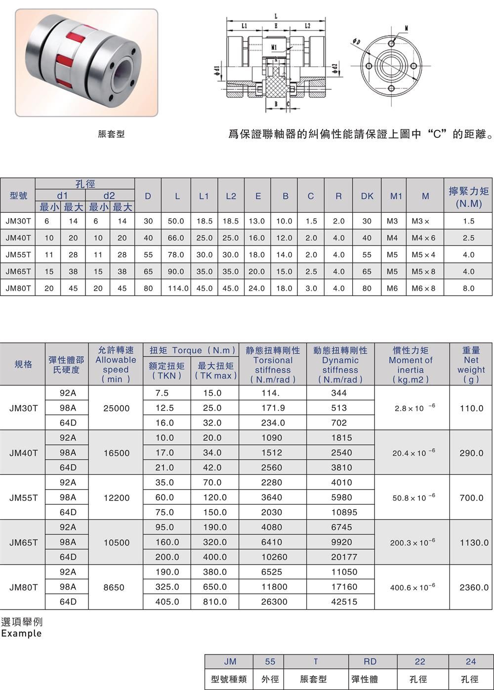 JM-T雙節(jié)無(wú)齒隙彈性體聯(lián)軸器主要是指聯(lián)接兩軸或軸與回轉(zhuǎn)件,一同回轉(zhuǎn)在傳遞運(yùn)動(dòng)和動(dòng)力過(guò)程中,在非正常情況下會(huì)脫離開(kāi)而正常情況下不脫開(kāi)的一種機(jī)器裝置,它也可以作為一種安全防護(hù)裝置,從而使聯(lián)接機(jī)件承受過(guò)大的載荷而不壞掉,起過(guò)載保護(hù)的作用。聯(lián)軸器又稱聯(lián)軸節(jié),是機(jī)械關(guān)節(jié)所在地,同時(shí)將機(jī)構(gòu)不同中的從動(dòng)軸和主動(dòng)軸牢固的鏈接起來(lái)一同旋轉(zhuǎn),并傳遞扭矩和運(yùn)動(dòng)的機(jī)器機(jī)械部件,有時(shí)用聯(lián)接軸等其它零件(如帶輪、齒輪等)也是可以的,常由兩半塊合成,緊固在兩軸端,再通過(guò)一些特殊的方式將兩半聯(lián)接起來(lái),它用途還更深入,可兼有補(bǔ)償兩軸之間由于工作時(shí)的變形、制造安裝不精確或是熱膨脹導(dǎo)致高溫等原因所發(fā)生的偏移以及工作中帶來(lái)的緩和沖擊和吸振,保證機(jī)器安全。其緩沖性,對(duì)于經(jīng)常在工作載荷變化的場(chǎng)合,聯(lián)軸器是可以減振、緩沖的彈性元件,來(lái)保護(hù)機(jī)器運(yùn)作少受損傷,最大效果達(dá)到不受損傷,安全可靠,結(jié)構(gòu)簡(jiǎn)單,易拆易裝,維護(hù)方便。