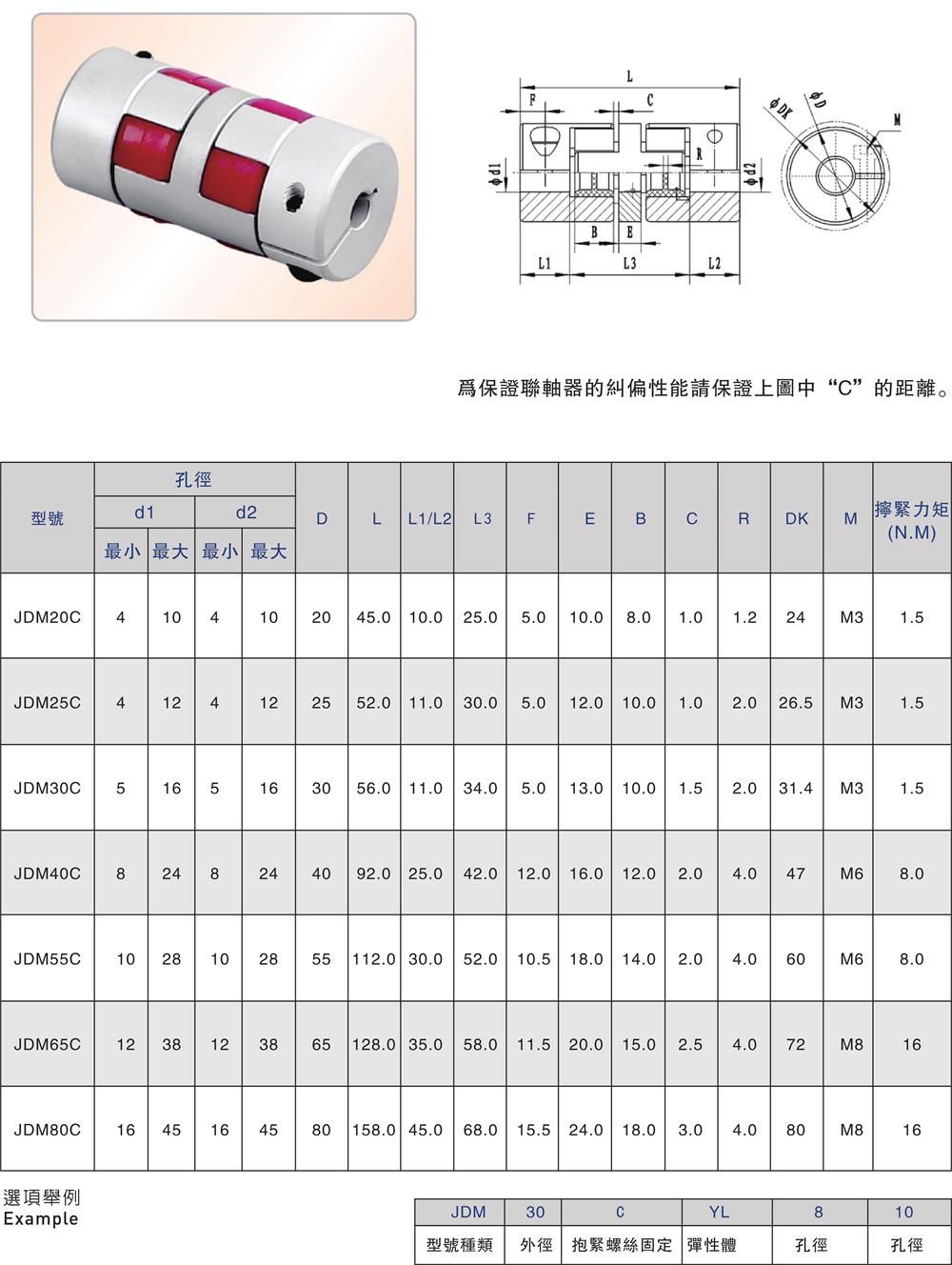 JDM-C雙節無齒隙彈性體聯軸器主要是指聯接兩軸或軸與回轉件,一同回轉在傳遞運動和動力過程中,在非正常情況下會脫離開而正常情況下不脫開的一種機器裝置,它也可以作為一種安全防護裝置,從而使聯接機件承受過大的載荷而不壞掉,起過載保護的作用。聯軸器又稱聯軸節,是機械關節所在地,可以將機構不同中的從動軸和主動軸牢固的鏈接起來同時旋轉,并傳遞扭矩和運動的機器機械部件,有時用聯接軸等其它零件(如帶輪、齒輪等)也是可以的,常由兩半塊合成,緊固在兩軸端,再通過一些特殊的方式將兩半聯接起來,它的用途不僅僅如此,還可以兼有補償兩軸之間由于工作時的變形、制造安裝不精確或是熱膨脹導致高溫等原因所發生的偏移以及工作中帶來的緩和沖擊和吸振,保證機器安全。其緩沖性,對于經常在工作載荷變化的場合,聯軸器是可以減振、緩沖的彈性元件,來保護機器運作少受損傷,最大效果達到不受損傷,安全可靠,結構簡單,易拆易裝,維護方便。